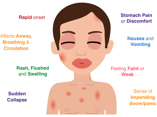 Allergy signs and symptoms need to be recognised early to ensure that the right treatment is given. Signs of an allergic reaction usually occur within minutes of being exposed to an allergen but can appear up to two hours after exposure. Mild to moderate allergic symptoms can be treated with antihistamine medication but should be considered as possible 'early warning signs' as mild symptoms can quickly develop into a life-threatening severe allergic reaction.